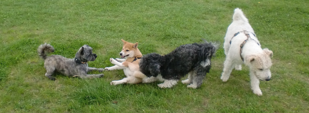 Nach Einschätzung Ihres/r Hunde(s) werden Spaziergänge mit passenden Hunden organisiert. Damit die Hunde einen Raum zur gesunden Verhaltensentwicklung bekommen. Wir üben auch, Ihr Verhalten bei Aussenreizen richtig einzusetzen und besprechen das Hundeverhalten der Hunde untereinander.